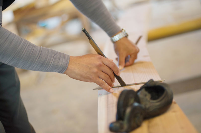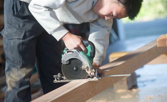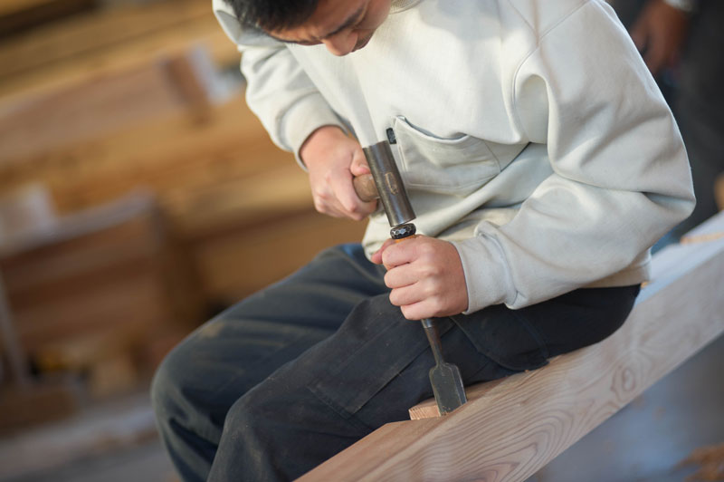 親方の家に住み込むといった時代もありましたが、現在は一般的な会社に就職するのと同じような感覚ではないでしょうか。沖野工務店では入社後は簡単な作業から行い、道具の使い方を覚えます。その後、先輩大工の補助作業をしながら段々と仕事を覚えていきます。