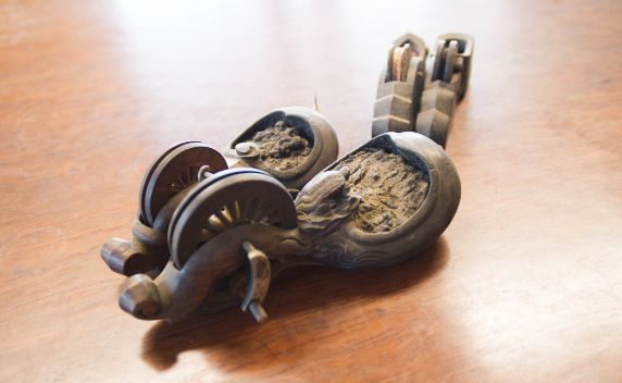 木材加工の目安線をつけるための道具です。糸に墨を染み込ませ、線を引きたい場所にあてます。
