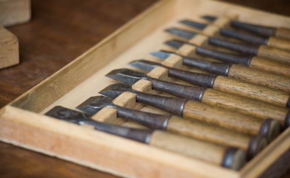 木組みの接合部分の加工や、彫刻に使われます。使用頻度の高い、大事な道具です。