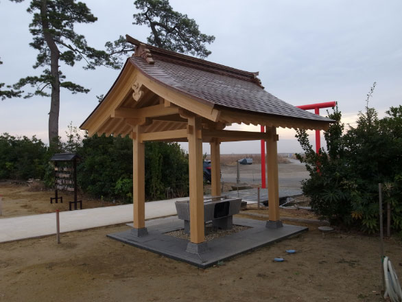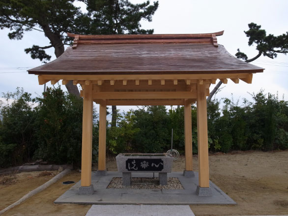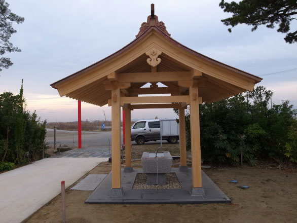 東日本大震災からの再建工事で、(有)K様は社殿工事で多忙のため弊社にて手水舎を担当しました。